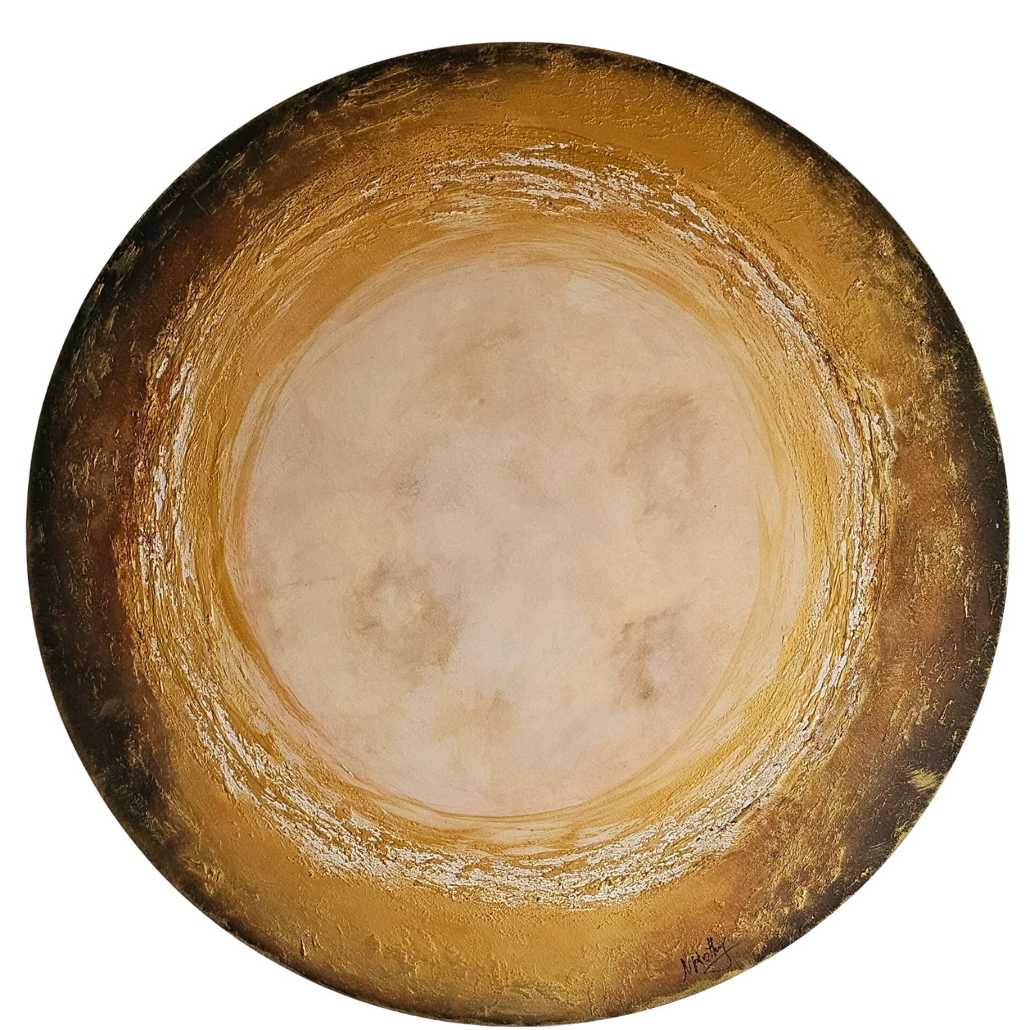 La toile invite à la contemplation, à un retour vers l’essentiel. Elle parle de cycles, de renaissance et de l’énergie subtile qui relie le visible à l’invisible. Elle est à la fois matière et lumière, terre et ciel, corps et esprit.